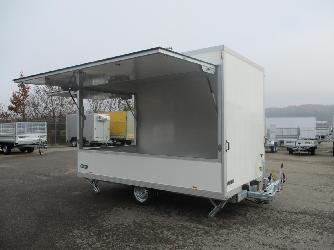 1,8 to 1-Achs Verkaufsanhänger mit wegschwenkbarer Zugdeichsel, lagernd - REDUZIERT !!! Total weight 1.800 kg Internal dimensions 3.600 × 2.040 × 2.300 mm Show trailer