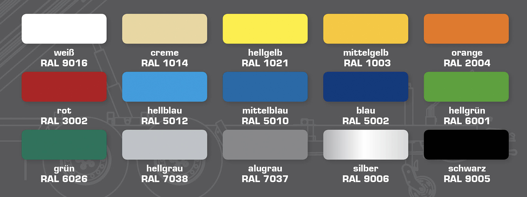 Overview of the standard tarpaulin colours: