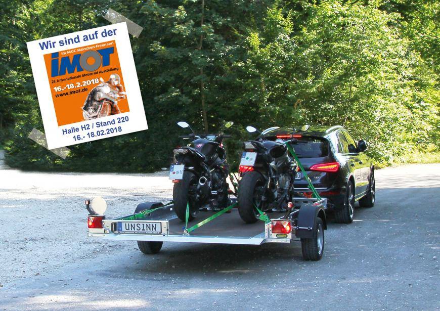 We are at the motorcycle exhibition IMOT at the MOC Munich from 16 to 18 February 2018. Visit us at our stand number 220 in hall H2. Get to know our new products on the theme of "Travelling with the motorcycle". We can offer you optimal transport solutions for your motorcycle and your equipment. At the destination you can explore the countryside without any annoying luggage. Let us surprise you! We are looking forward to seeing you!