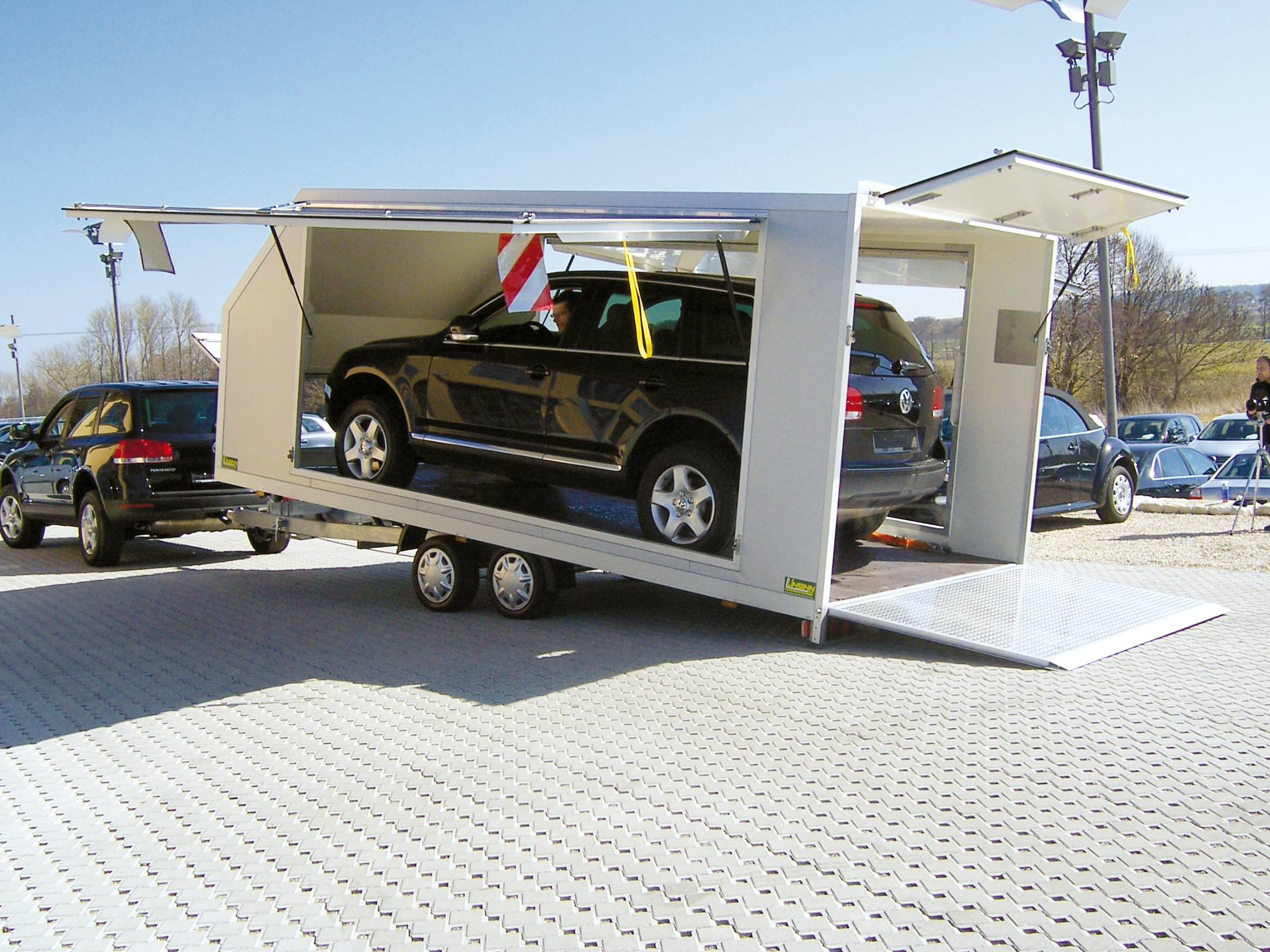 Whether it is for conventional transport or used as a mobile office, with our cargo trailers your creativity has no limits. Be it flaps, doors, windows, partition walls, stages, awnings, cooling units, air conditioning or lightings, we will implement your ideas. Due to the stable sandwich panels and unique statics the special trailers are robust and durable, even with the most special requests.