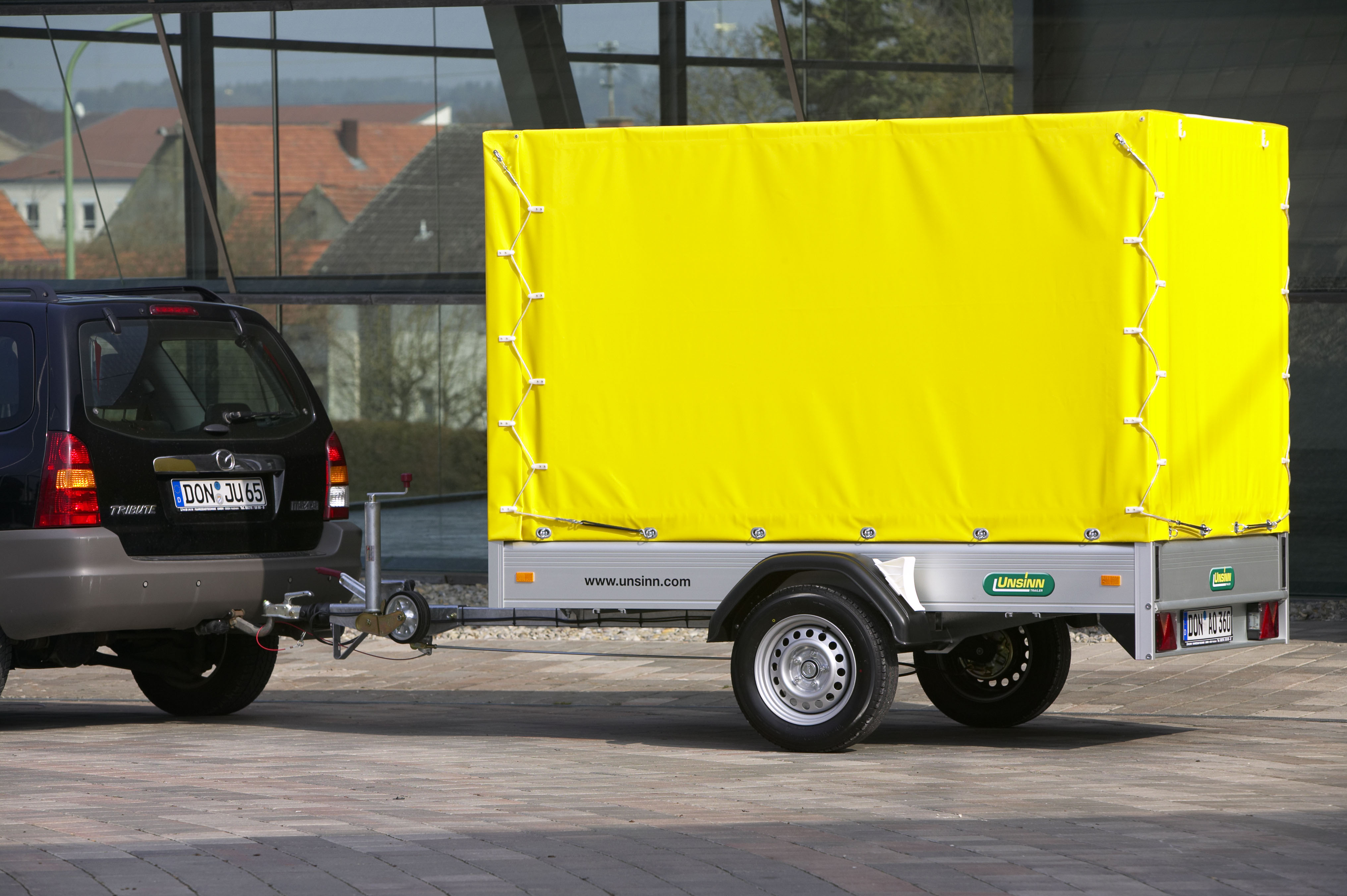 If you regularly transport bulk material such as wood, paving stones or green cuttings, a box trailer by UNSINN will be the right choice for you. A trailer with 750 kg can also be towed by most cars and thus is ideal for the daily use. The aluminium frame is light and still particularly stable, the loading area is anti-slip and waterproof. The load can be lashed with ropes and lashes at the lateral lashing eyes. Practical equipment such as a tarpulin, a light cargo superstructure or a trailer net additionally ensure that shredded materials and green cuttings do not fall off the trailer during the drive. Another benefit: The trailer is also useful for camping, bike or motorcycle trips. A lockable aluminium top including crossbeams for the transport of bikes or motorcycle access rails are available upon request.