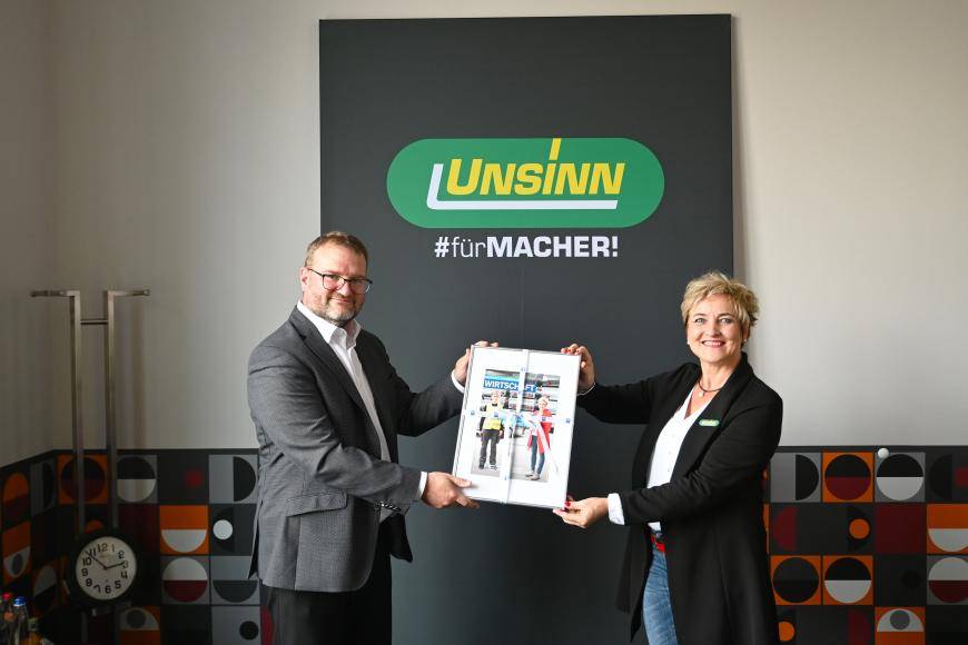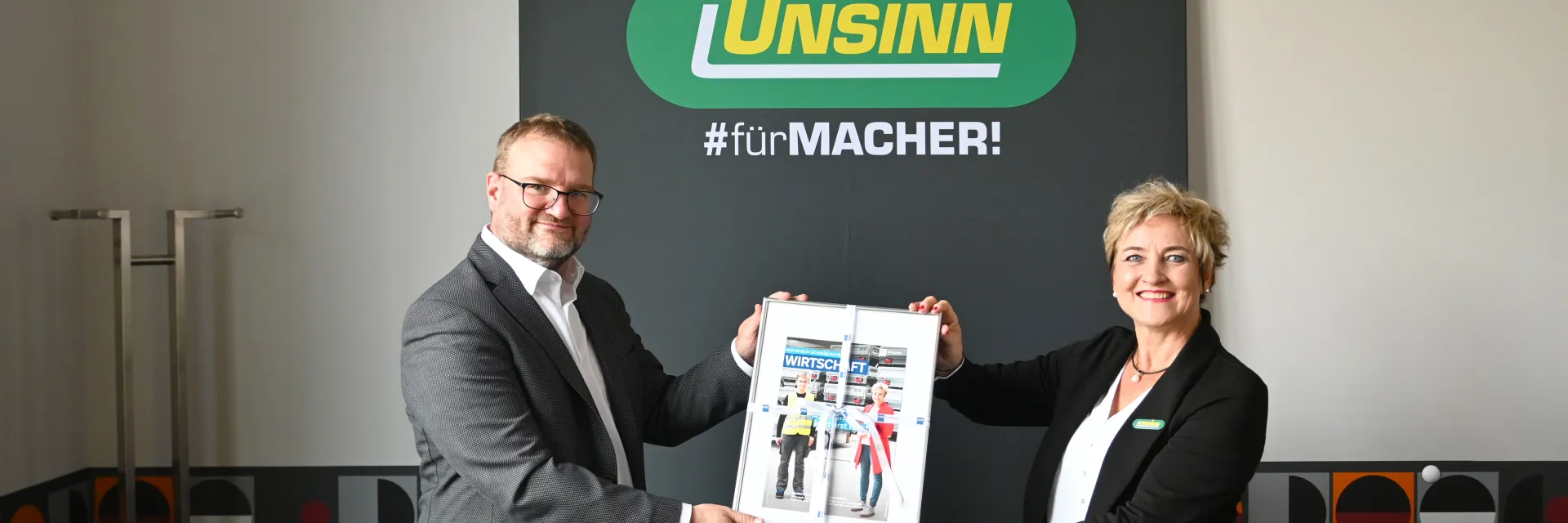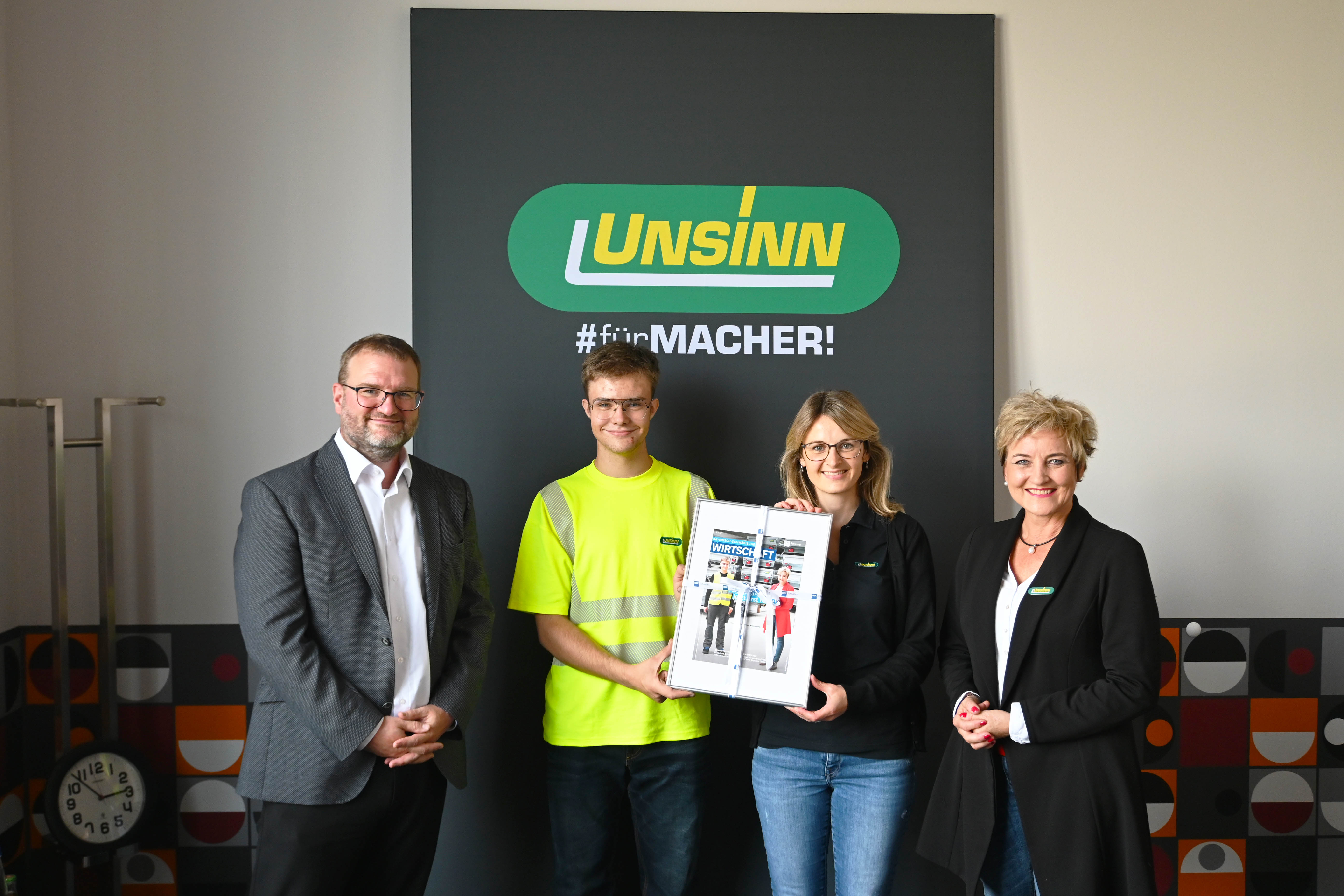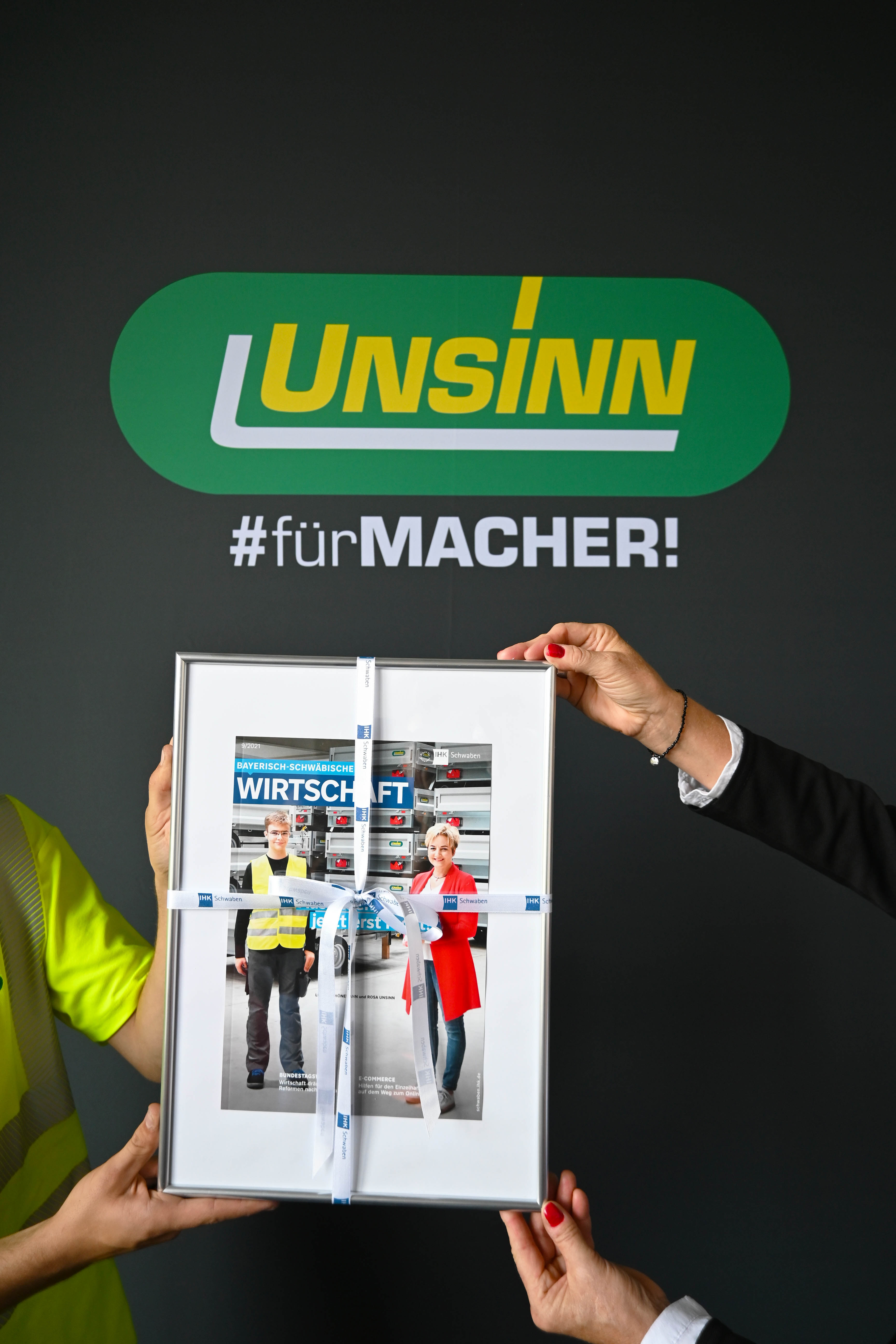 Thomas Schörg, Geschäftsbereichsleiter Kommunikation bei der IHK Schwaben, besuchte unsere Geschäftsführerin Rosa Unsinn und überreichte ihr als Präsent und Erinnerung eine gerahmte Titelseite des aktuellen Magazins 📰👏.
