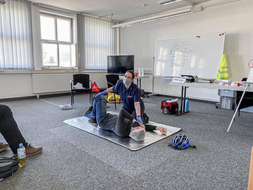 Wenn Arbeitsunfälle im Unternehmen passieren, ist es immens wichtig, dass es Ersthelfer gibt, die die verletzten Kollegen ausreichend erstversorgen. Die Erstversorgung ist nicht immer leicht, weshalb unsere Ersthelfer alle zwei Jahre einen ganztägigen Kurs besuchen müssen, bei dem sie alle wichtigen Handgriffe lernen.