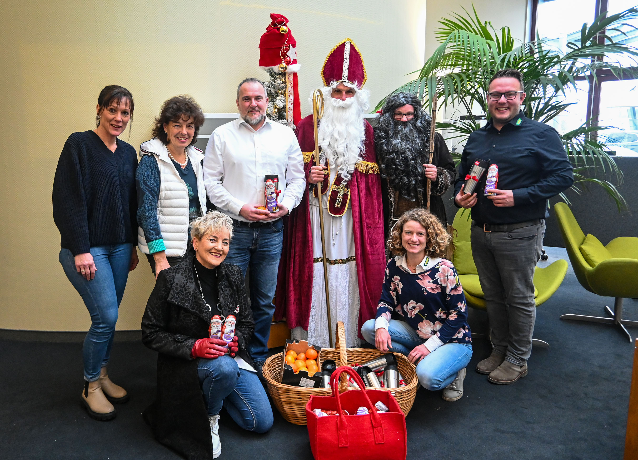 Nikolaus-Besuch bei UNSINN! Das Trio Nikolaus, Knecht Ruprecht und Rosa Unsinn sorgte für vorweihnachtliche Freude. Neben Mandarinen und Schoko-Nikoläusen gab es für alle einen coolen UNSINN-Thermobecher, der bis Weihnachten kostenlos an unseren Automaten aufgefüllt werden konnte.