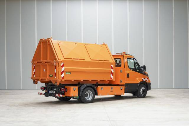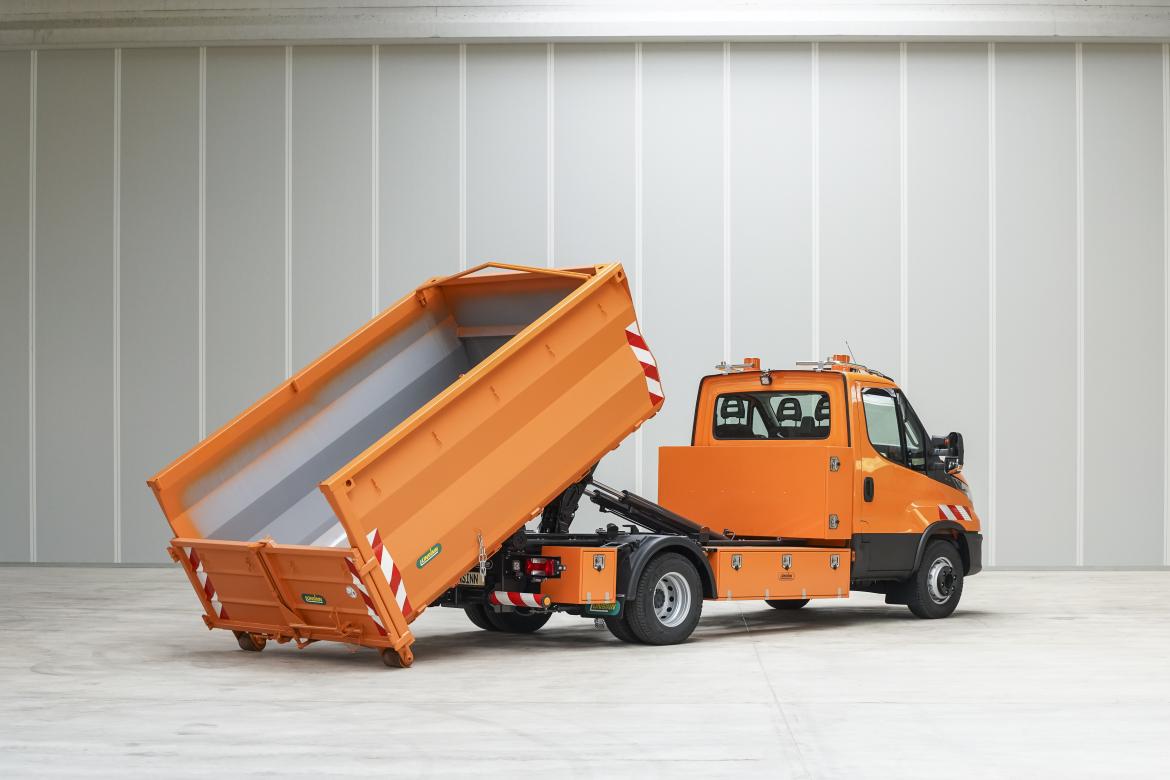 An UNSINN roll-off tipper is versatile and can be used all year round, making it an indispensable all-round vehicle. We build the matching hook lift onto the desired base vehicle, for example from IVECO, FUSO or MAN. Due to the construction according to DIN 30722-3, a container can be transported with vehicles of different classes (up to 12 t permissible total weight). Containers and implements can remain on site while the vehicle serves several locations.