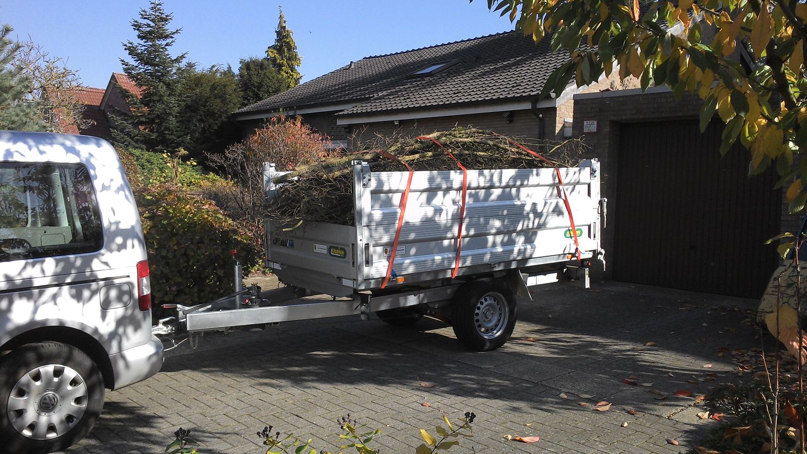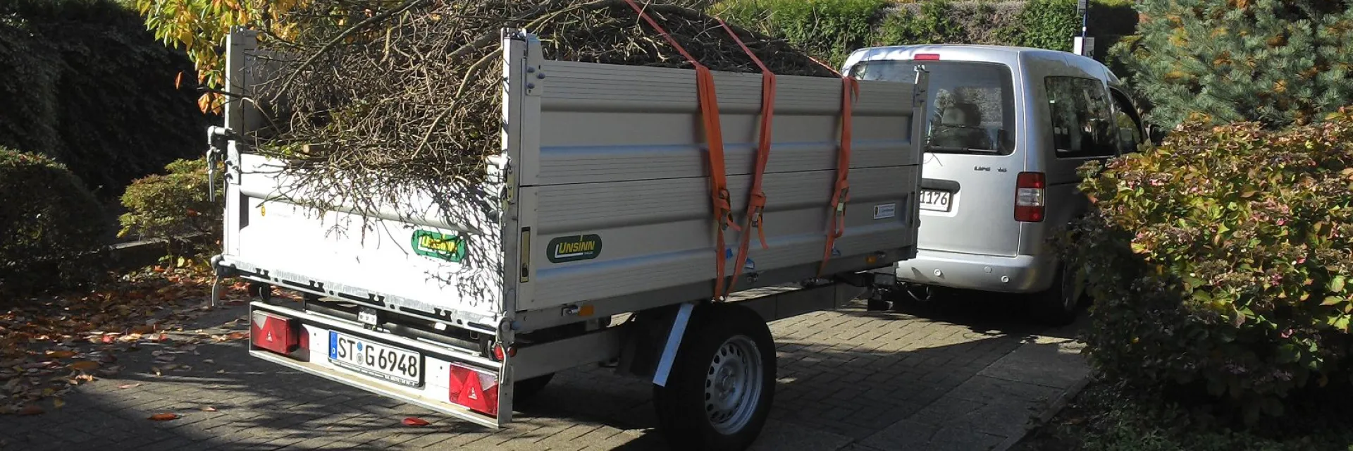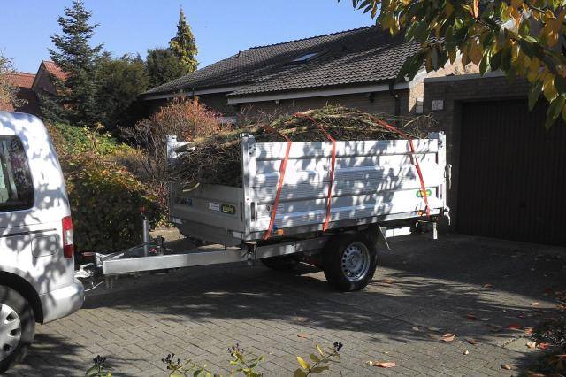 We are also very happy with the trailer in terms of technology. It runs perfectly when it is empty as well as when it is loaded, the tipping function works as it is supposed to and the trailer is really stable and robust. What we are also very glad about is that we have bought the trailer with original 2 x 400 mm side walls and not with a wire frame top. Especially at disposing bushes and branches nothing gets caught when tipping the load - no matter how it was loaded - and nothing falls off the trailer (e.g. pine needles, cuttings or sawdust) and the side walls are really light and stable at the same time. It is very useful that the trailer has inner and outer lashing points.
