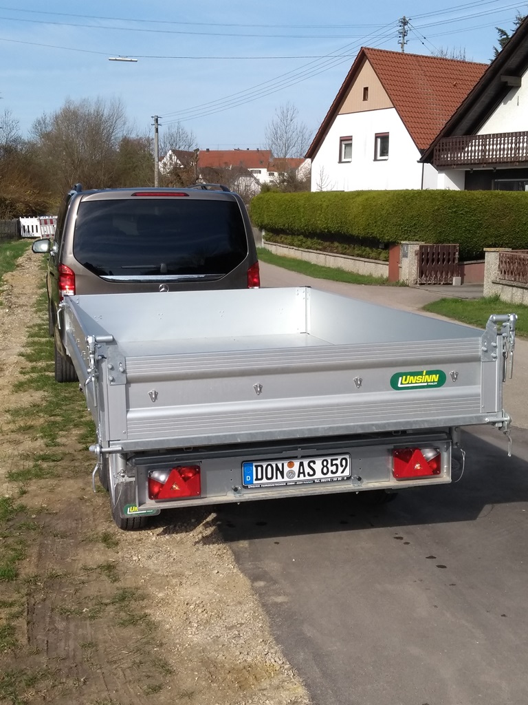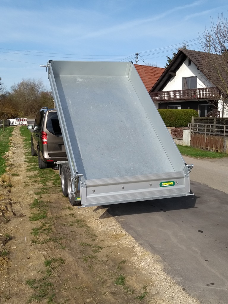 The three-way dumper is really perfect, has a super quality and equipment and also provides very good driving characteristics – empty and loaded. You almost do not notice the trailer with the car. I can highly recommend the trailer and the company Unsinn and I would buy it anytime again. Way to go.