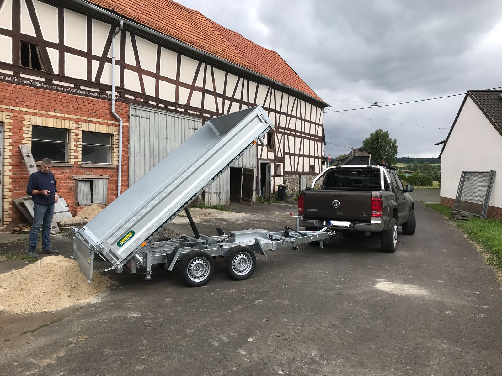 The UDK 3030 three-way tipper is simply awesome, very robust and we are very happy with the trailer! No matter where you show up with it, you will get envious glances and people will come talk to you. I want to use the opportunity to highly recommend the company Unsinn! Moreover, the very good advice of Mr. Fackler should be emphasised!