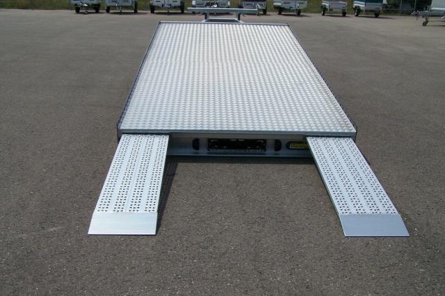 - Zwei Auffahrschienen aus Aluminium unter der Ladefläche eingeschoben mit einer Länge von ca. 1500 mm und einer Breite von ca. 400 mm