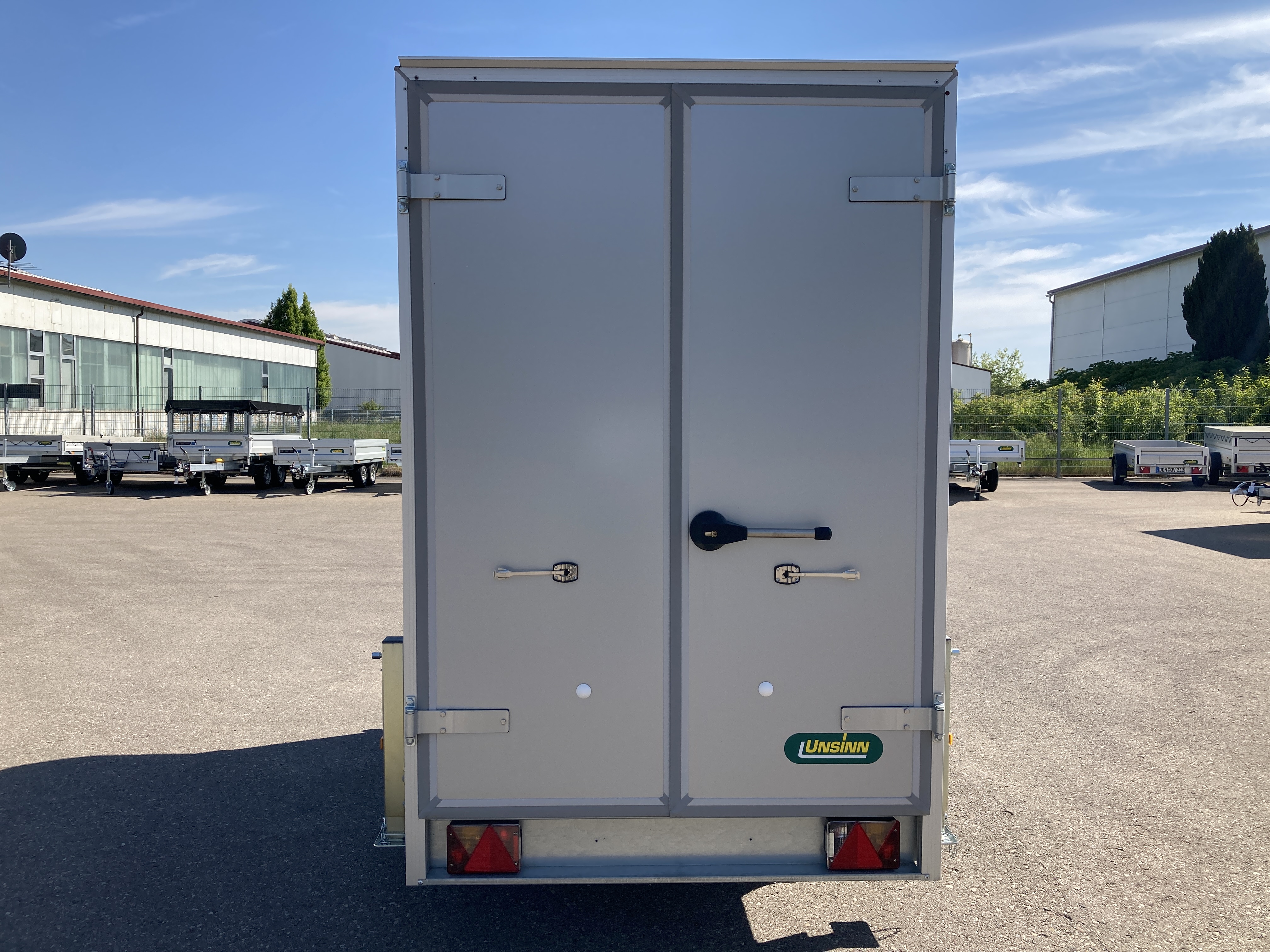 Doppelflügelige Hecktür mit Gummidichtung und Scharnieren aus Aluminium