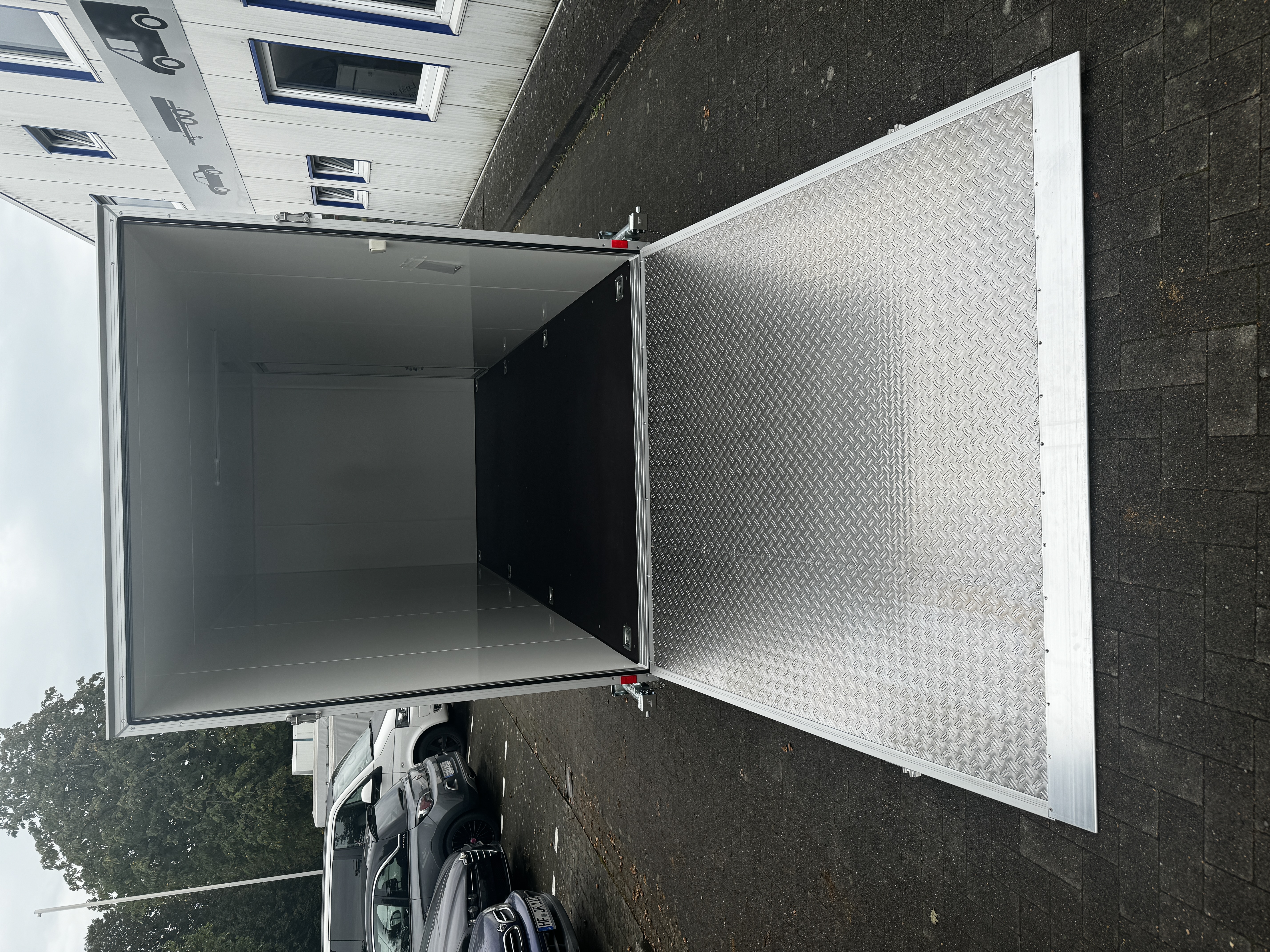 - Doppelflügelige Hecktür mit Gummidichtung, Aluminium-Scharnieren, Edelstahl-Drehstangenverschluss
