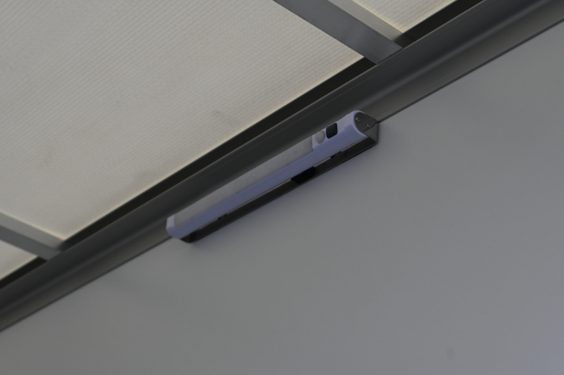 Eine schwenkbare LED-Innenleuchte mit Bewegungsmelder inkl. Batterien zusätzlich montiert
