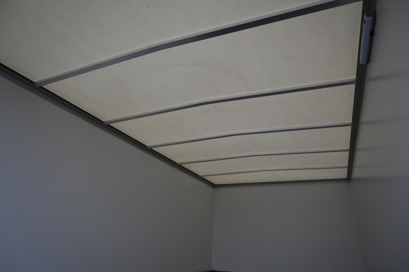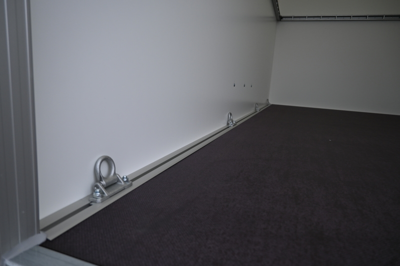 Stäbchenzurrschienen aus Aluminium mit Gummi ummantelt an der Stirnwand auf Höhe 700 mm & 1200 mm montiert,