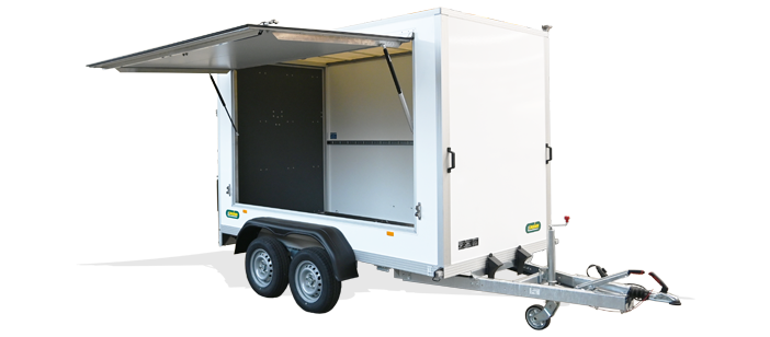 Seitenklappe in Fahrtrichtung rechts mit 2 Gasfedern, Windstützen und außenliegendem Drehstangenverschluss, Öffnungsmaß B x H = 2500 x 1440 mm