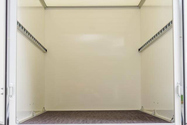 Stäbchenzurrschienen an der rechten Seitenwand auf Höhe 700 mm & 1200 mm montiert, IL 4260 mm
