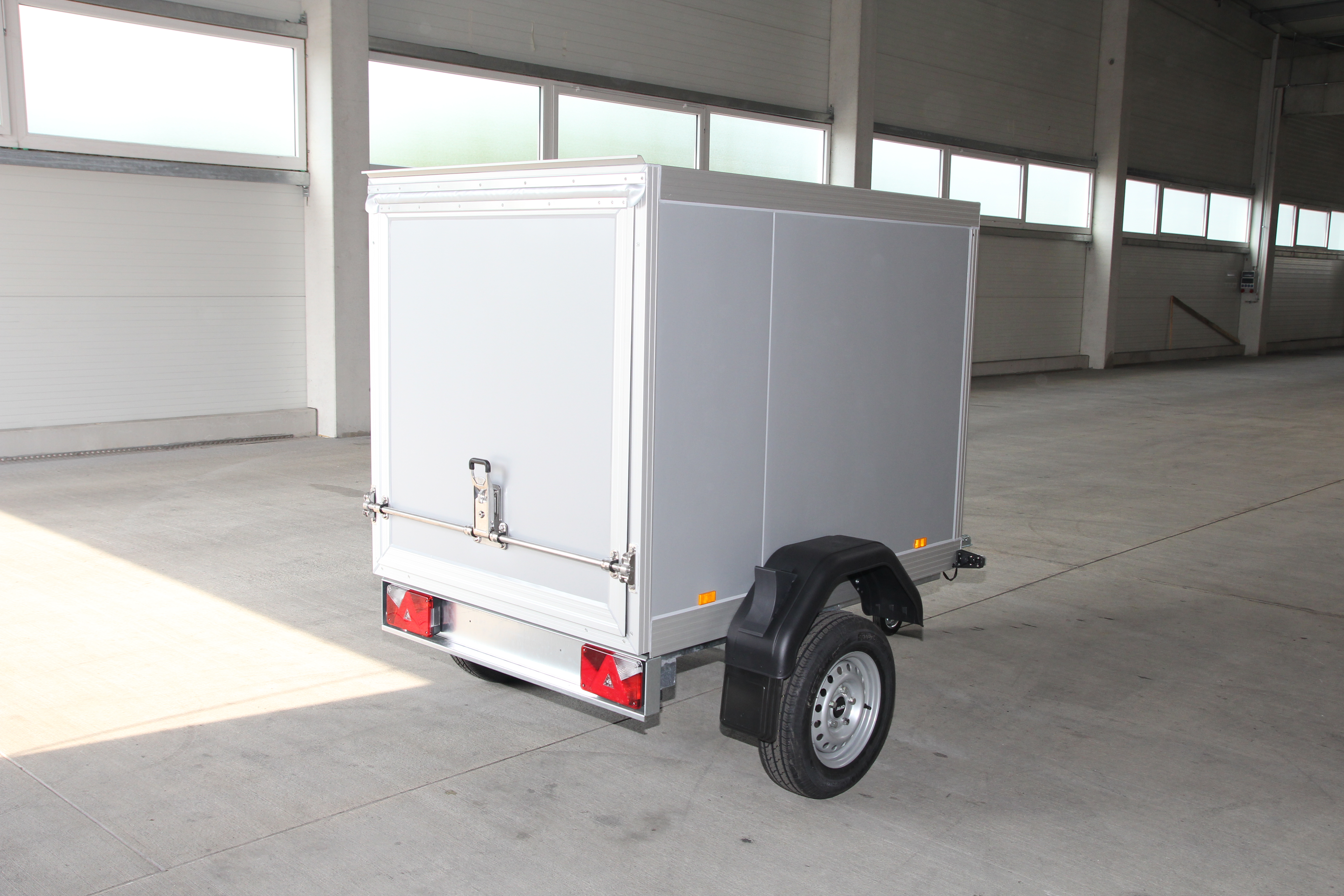 Double-wing rear door with rubber seal and aluminum hinges