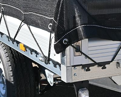 Lashing pins on and under the loading area can be loaded with up to 1500 daN (kg) each and can be rotated through 360°.