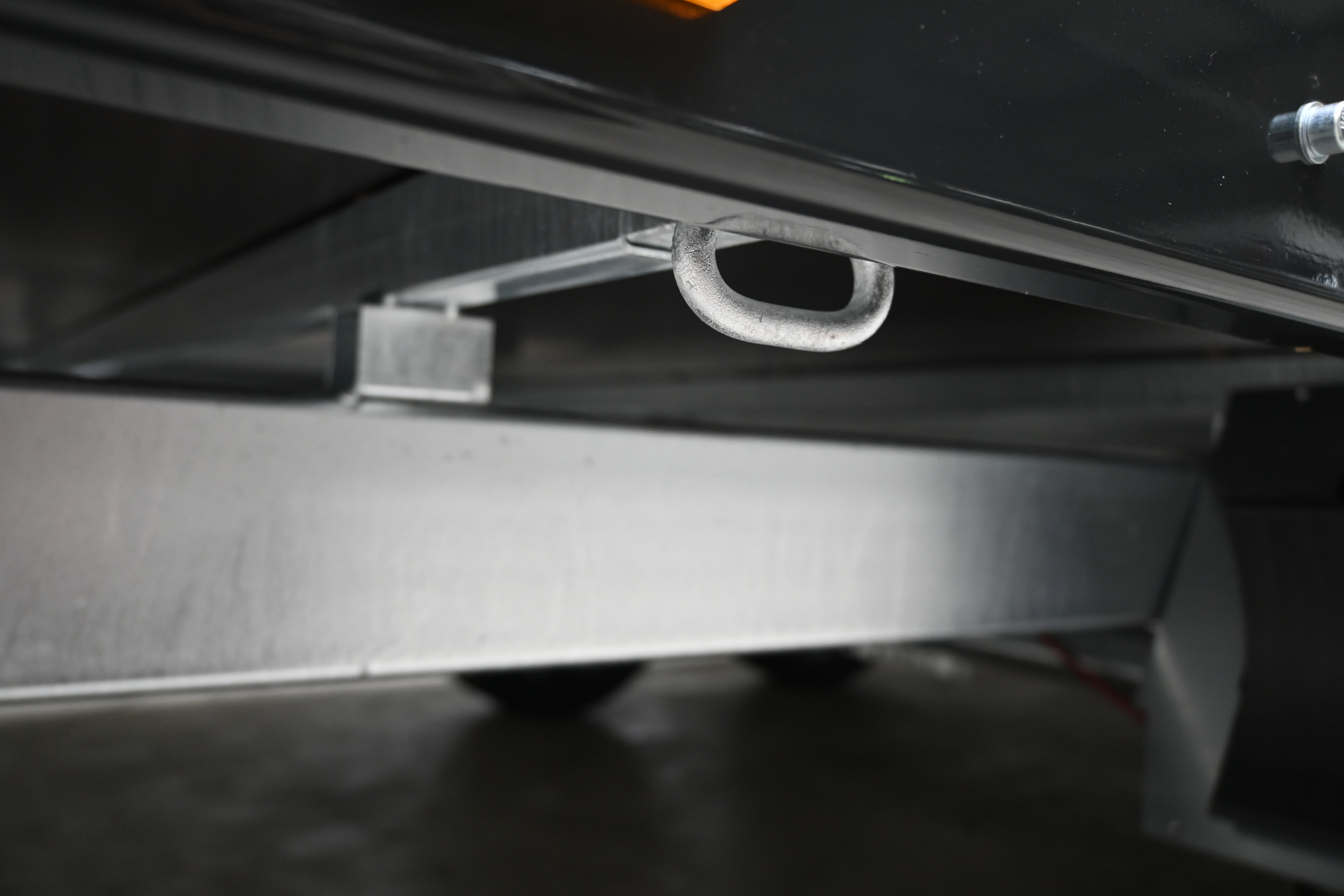 Powder-coated side skirts in black-grey (RAL 7021) for securing the load