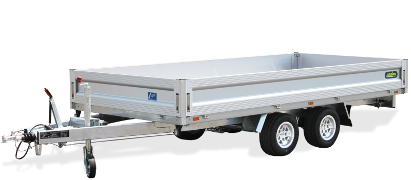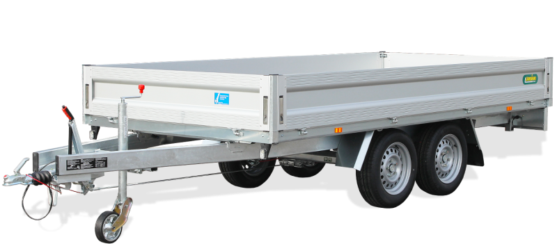 Platform trailers are diversely applicable in daily life. The low loading height is optimally adapted to the tyres, the support wheel is mounted to the robust support wheel crossbeam. The side walls can be completely removed to load and transport bigger goods.